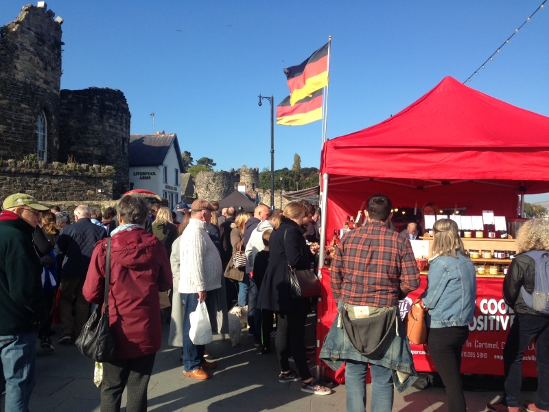 The next morning we enjoyed the free continental breakfast in the hostel (offering cereals, toast, ham, tomato, hot drinks and juice) and then heading to the main street to do a bit of shopping (after much deliberation I bought a pair of ankle boots from Jones’) before catching the 12.30pm train to Conwy via a change at Chester. You could tell Conwy was a nice town as soon as we got off the train – the view was dominated by a largely intact castle and tall town walls. We headed up the hill to our hostel (YHA), dropped off our bags and then walked back down to the town, taking in the views of the quayside, Rover Conwy and castle on our way. As we were the first of the Jamieson clan to arrive we took a short walk down the main street (the place was buzzing as it was the food festival and had a nice feel to it …little independent food and gift shops and plenty of pubs) and then up around the castle walls which stretched all the way around the market town, giving us a great vantage point of the town and surrounding fells. We then met Max and Zoe (who’d taken advantage of the nice weather and walked up Snowdon) and chatted, drank and ate in a tapas bar called The Bank of Conwy until Ho, Polly and Margie arrived around 8pm. We then took a wander down to the quay and had a drink in the Liverpool Arms before heading back up the hill to our hostel for the night.