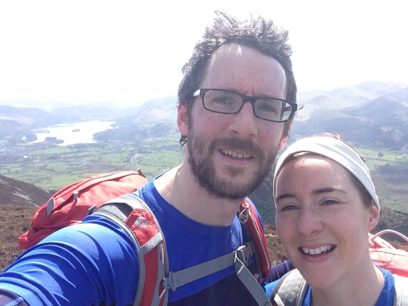 Tuesday 19 April Having checked the forecast we knew today was going to be a lovely sunny day so we packed up our hiking bags and drove to Keswick (again via Kirkstone Pass and Patterdale). After a brief stop at the Co-op to grab a sandwich we drove a further 5 miles out from Keswick and parked up in a layby near the Ravenstone Hotel. From here we began our walk that kicked off with a tough incline taking us on to the hill and giving lovely views towards Bassenthwaite Lake. Our route then took us up over Ullock Pike and along Long Side and Carl Side where there were amazing views of Keswick and Derwentwater. We also stopped to watch a paraglider that had set off from the top of Ullock Pike (nice excuse for a rest on the ascent!). As we continued up the terrain changed, with the final pull up to Skiddaw being loose slate – it was pretty steep and tough going! As it was a fine day, we could spot lots of the surrounding peaks from the top (Blencathra, Helvellyn, Scafell). We didn’t stay here too long though as it was a lot cooler at the top! After taking a few photos and finishing off a sausage roll we started our descent, which took us north over the shoulder of the summit again on to loose slate until we picked up an old miner’s track that took us down (steep in places!) the mountain. There were good views back up towards Skiddaw and the ridge as we made our way down, finally crossing a stream and coming to Bassenthwaite common. We then continued on level ground until we crossed Southerndale Beck and then followed a path around the  edge of the hill until we rejoined our original path taking us back down to the car. The route was about 6 miles in total and took us 4 hours (including our stops for photos and food). It was a challenging walk with great views…and I was definitely glad to see the car at the end! We took the Hard Knott Pass route back to Ambleside (via Windermere) – it was lovely taking in the views of the sun on the hills and the landscapes reflecting on the calm waters of Ullswater and Windermere. After showering we had a chill and then headed out for some food and then back for an early night…no surprises we were pretty knacked!