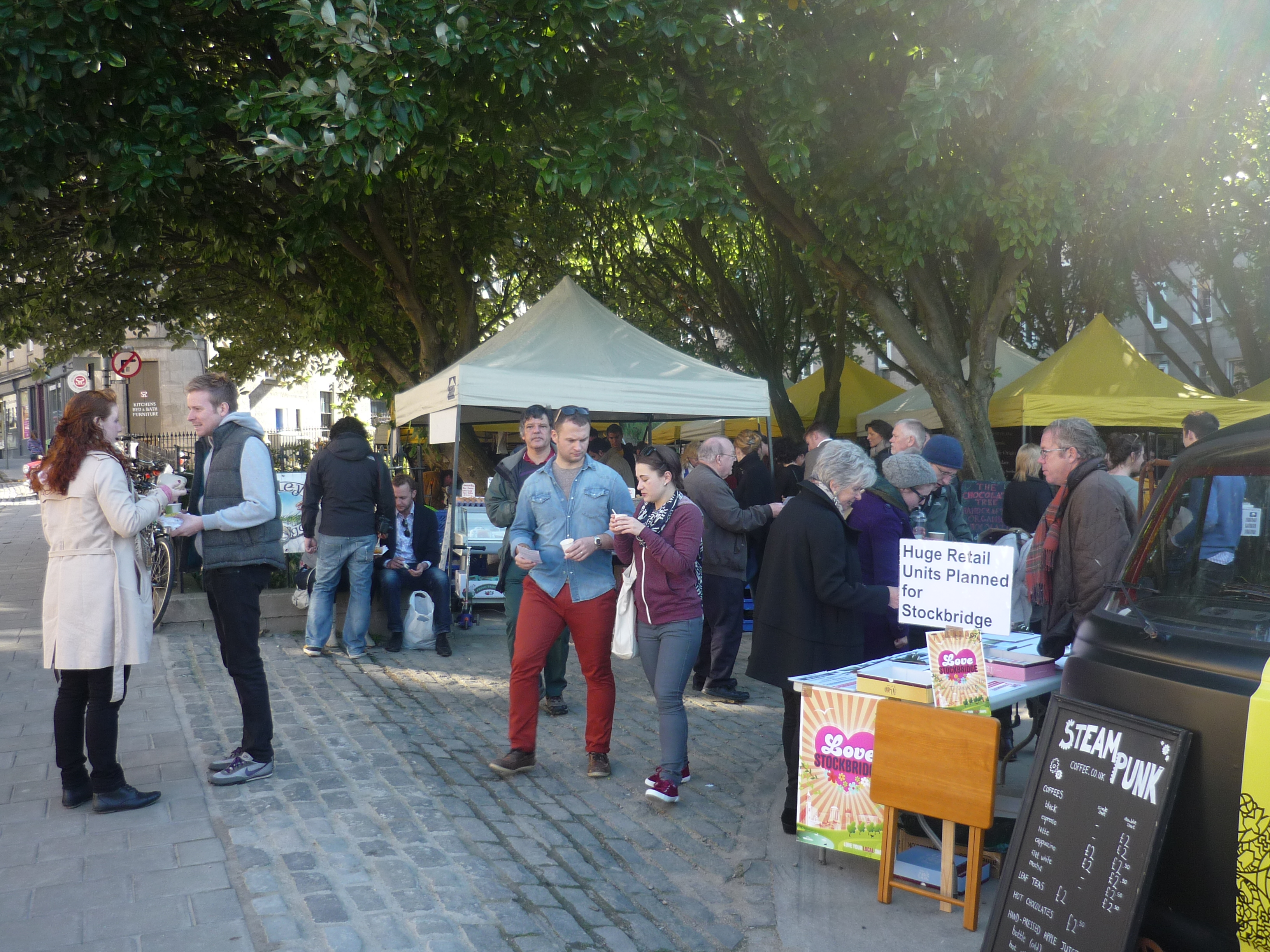 Today (Sunday) we had a leisurely breakfast and then walked the 2 miles (ish) to Stockbridge, which is a popular area just northwest of the city centre that hosts a weekly farmer's market. The sun was shining and the place was buzzing...there were loads of stalls selling food, drinks and gifts. We obviously hadn't quite built up an appetite since breakfast as we only walked away with a small tub of tapenade!