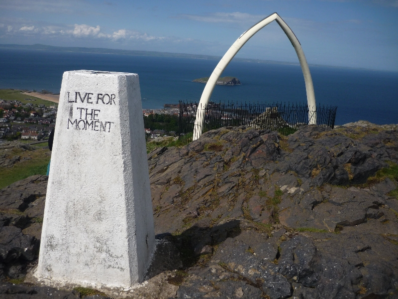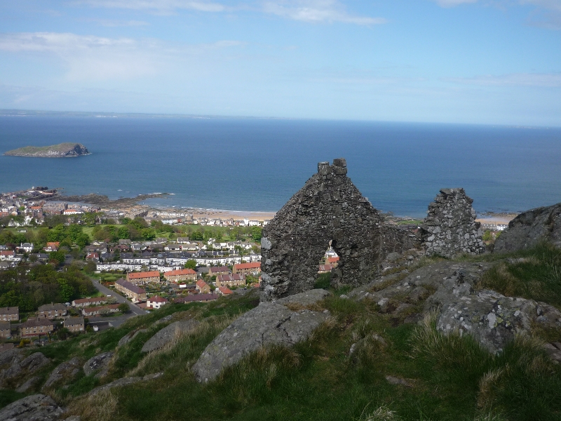 After polishing off our picnic whilst enjoying the views out to sea, we parked in the town railway station car park and set off on a walk round the town that we'd found in our little Edinburgh walks book. The walk took about 2 hours and took us up the top of the Law where we had great views of the surrounding areas, before heading back into the town, out as far as the Seabird Centre and then back across the beach and back to the car. The walk started out in the sun and we took some nice pictures at the top of the Law (see below!) however it soon turned showery as we headed off the hill so we didn't hang around much after that.