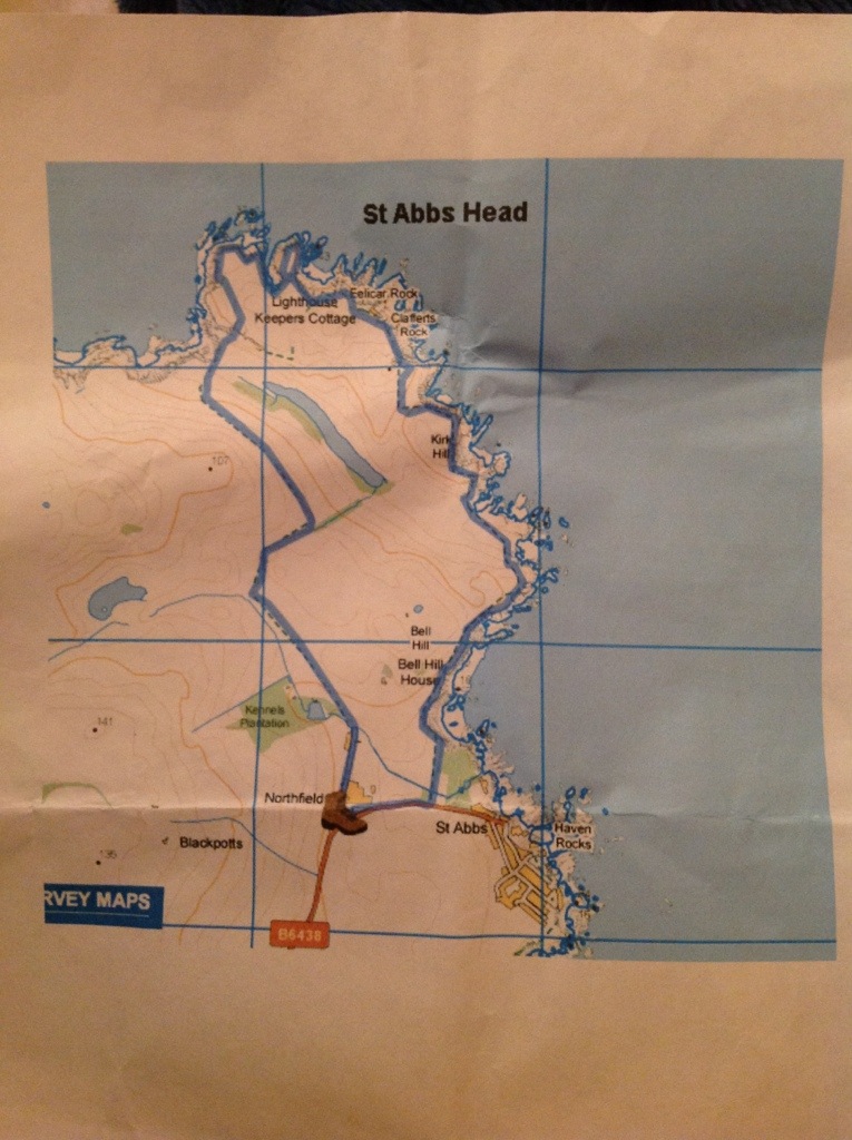 Today being the last day of my Christmas hols we decided to get out for a nice walk so after brecky we headed to a little town called St Abbs - about an hour's drive from Edinburgh along the East coast. We followed a walk Glenn found online that took us on a loop through farmland and along the coast within the St Abb's Head National Nature Reserve. The walk took us about 2 hours which included time to take a few photos and enjoy a cuppa from the flask half way round. Although my photos don't really capture it, the coastal views were pretty impressive and included a waterfall, a lighthouse marking the southern tip of the Firth of Forth and rock formations that looked very similar to those out round the Chasms!