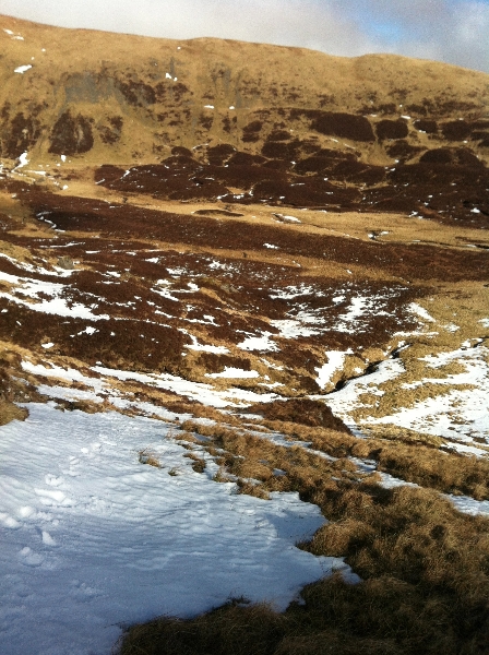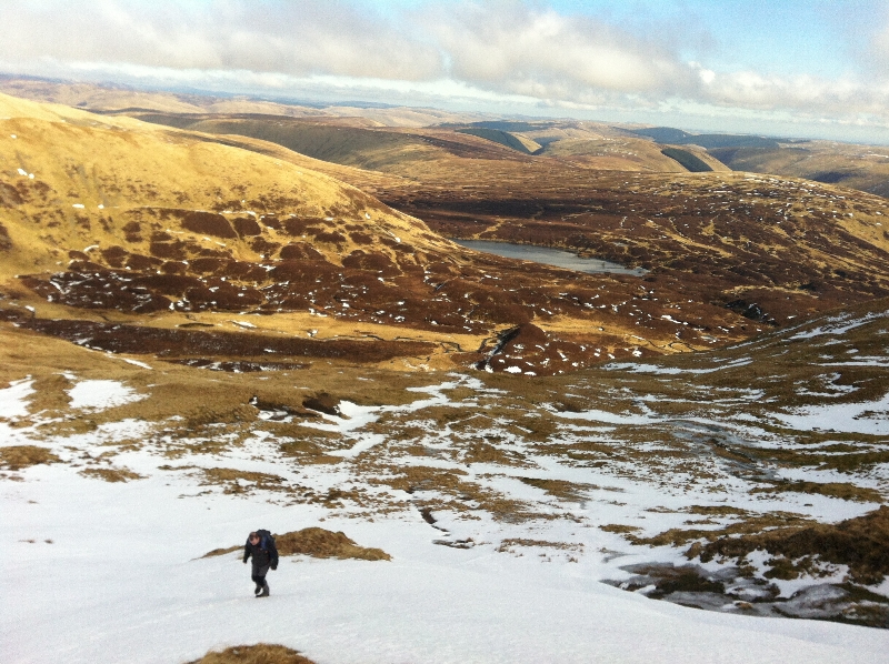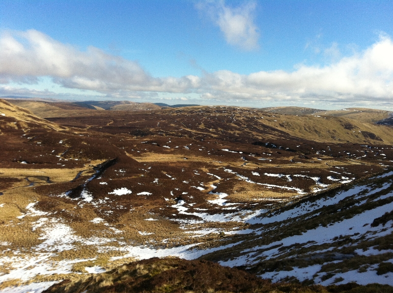 Went for a walk with cousin Davey this morning up a mountain called White Coomb (means Hill of the white valley). It is in the Scottish Borders near Moffatt. Munro Magic describe it as: