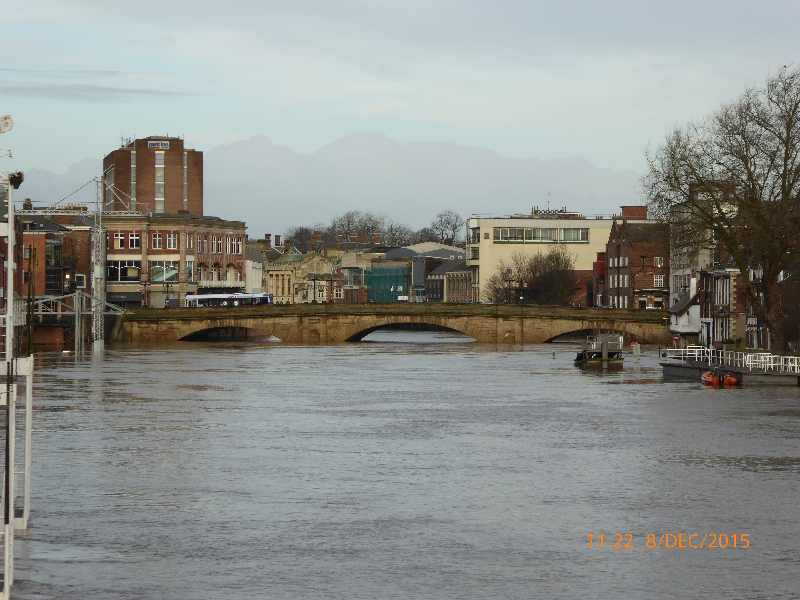 To celebrate me finishing for the Christmas hols and get us in the festive spirit we booked a short trip down to York - we drove down on 7th (200 miles) and booked into the Holmlea Guest House which was just 1 mile south of the city. In the few days running up to the trip there had been bad flooding across Cumbria and Yorkshire and although the roads getting down were fine, we did notice a few waterlogged fields and the River Ouse in York had burst its banks (see pics below).